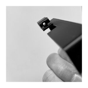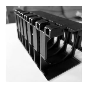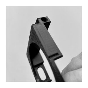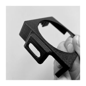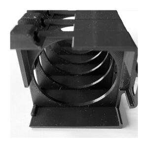 Jest to wydruk 3D. Zaprojektowany tak, aby od dołu otworu do wężyka wkleić nakrętkę. Jednak szybko okazało się, że użycie twardszego materiału do druku i lekka modyfikacja pozwoliły na rezygnację z tego dodatkowego elementu. Wężyk siedzi pewnie bez dodatkowych działań.